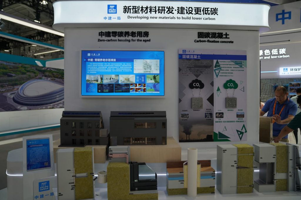 كما يعد استخدام مواد جديدة لتقليل كمية الأسمنت أحد الطرق المهمة لتحقيق “انبعاثات منخفضة للكربون” في قطاع مواد البناء. قدّمت شركة المجموعة الأولى للإنشاءات الصينية مواد جديدة مبتكرة مثل “التربة الصلبة بواسطة الميكروبات” و “الخرسانة منخفضة الكربون” و “الخرسانة الثابتة الكربون / الخرسانة الخالية من الكربون”، بهدف تعزيز التنمية المستدامة الخضراء.