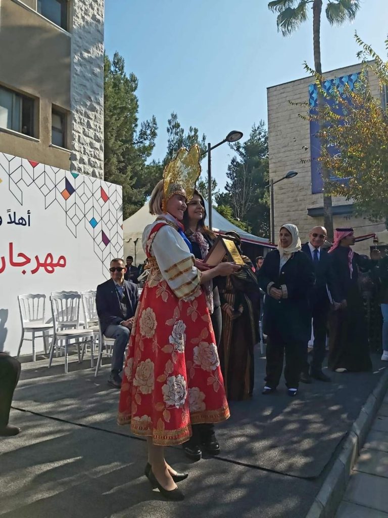 في كانون الأول (ديسمبر) الحالي 2022، شارك “المنتدى النسائي لنصيرات الثقافة الروسية في المملكة الأردنية الهاشمية – “ناديجدا”، بفعالية متميزة التأمت في “جامعة الأميرة سمية للتكنولوجيا”، هي مهرجان الفولكلور الطلابي، وقد عرض المنتدى على جمهرة المشاركين الواقع الحضرني الروسي بثقافته وفلكلوره وتقاليده الغنية تاريخياً، وهي التي دأب منتدى “ناديجدا” على التعريف به ترويجه في أوساط المواطنين الأردنيين المحبين للثقافة وتقارب الشعوب حول مشتركات كثيرة في سبيل إعلاء القيم الإنسانية ونشر وتدعيم أركان السلام العالمي.