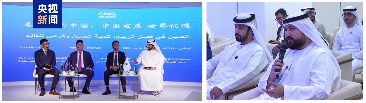 في 25 مارس بالتوقيت المحلي، أقيمت في أبوظبي الجلسة المخصصة للإمارات العربية المتحدة في إطار جلسات الحوار العالمي حول الصين تحت العنوان” الصين في فصل الربيع: تنمية الصين وفرص العالم“، التي نظمتها بشكل مشترك ، كلٌ من مجموعة الصين للإعلام وسفارة الصين لدى الإمارات العربية المتحدة، والقنصلية العامة الصينية في دبي، ومركز«ترندز للبحوث والاستشارات» الإماراتي. وألقى نائب رئيس دائرة الدعاية للجنة المركزية للحزب الشيوعي الصيني و رئيس مجموعة الصين للإعلام شن هاي شيونغ نائب كلمة عبر الفيديو. وحضر الحفل وألقى كلمات كل من السفير الصيني لدى الإمارات زنغ جي شين، والقنصلة العامة الصينية في دبي أو بوه تشيان، ورئيس مركز «ترندز للبحوث والاستشارات» الإماراتي محمد العلي. كما شارك في الحفل أكثر من 50 ضيفاً من أوساط الأعمال والأوساط الأكاديمية ووسائل الإعلام في كل من الصين والإمارات.